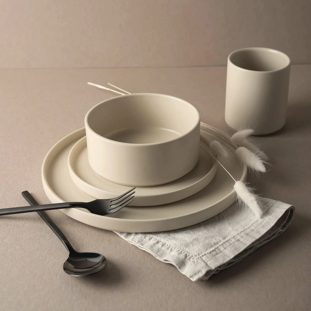 Create a calm, considered table with our Matte Stoneware Dinner Set in cream — a modern dinnerware set designed for everyday dining and effortless entertaining. Crafted from durable stoneware with a smooth matte finish and softly curved profile, its warm neutral tone complements contemporary, Scandinavian and organic-inspired interiors.