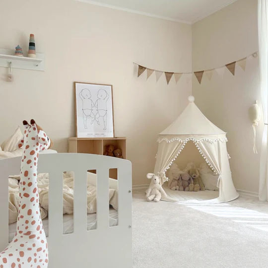 Available in soothing tones of beige and grey, its neutral palette blends effortlessly into nurseries, playrooms, and garden settings alike. Lightweight and easy to fold, the tent can be assembled, stored, or carried with ease, making it perfect for tea parties at home or playful escapes outdoors.