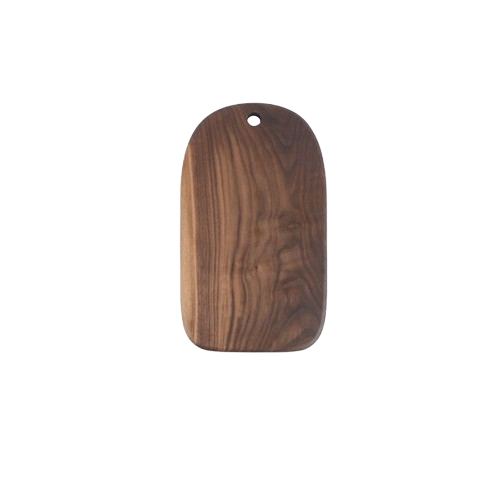 Crafted from solid black walnut, this wooden cutting board is designed for both preparation and presentation.