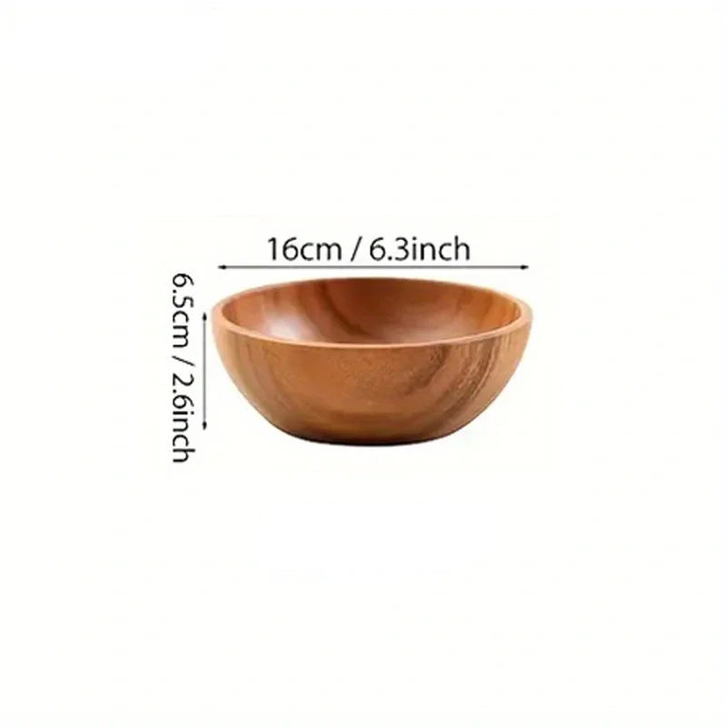 Each bowl showcases the rich grain patterns and natural variation of acacia wood, finished with a smooth, hand-polished surface that feels soft and refined to the touch. The classic round silhouette offers a timeless aesthetic that sits comfortably within modern, rustic, and minimalist kitchens.