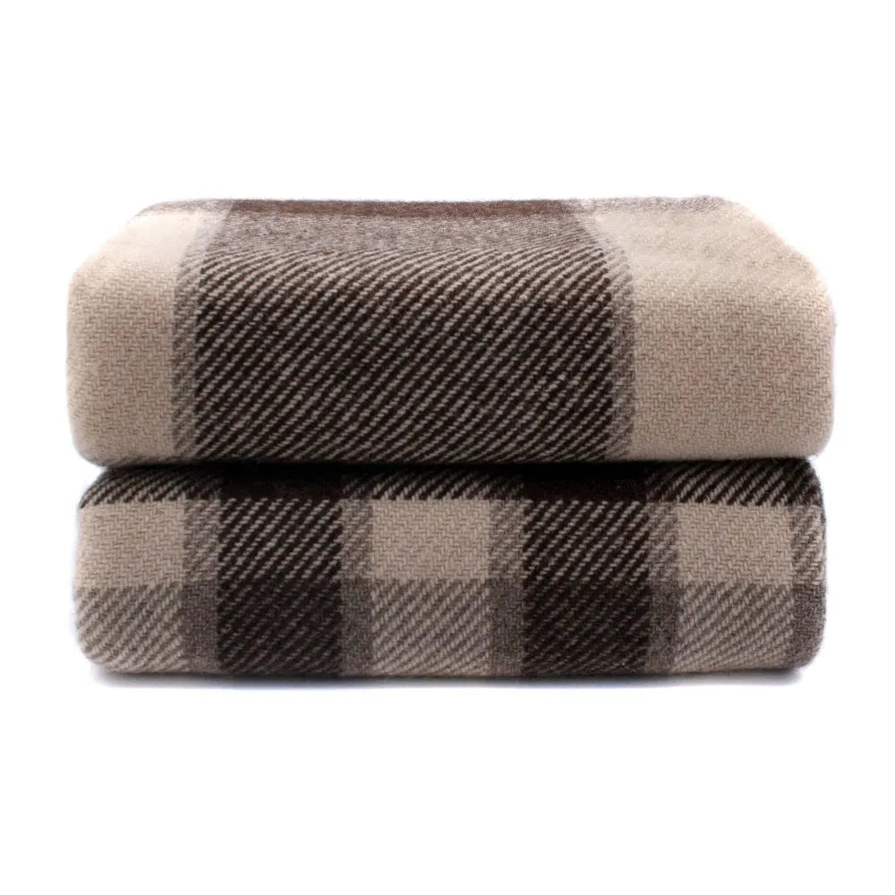 Crafted using time-honoured weaving techniques, each blanket features cream and warm brown wool tones arranged in a classic plaid pattern. The pure wool fibres regulate temperature naturally, feeling soft against the skin and becoming even more supple with use over time.