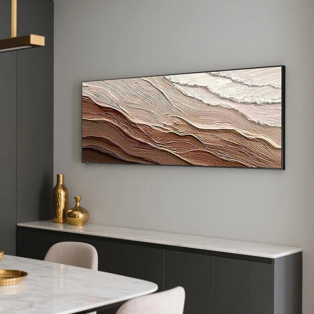Designed in a horizontal format, this textured wall art brings visual balance and grounded warmth to modern interiors. Ideal for living rooms, bedrooms or serene office spaces, it suits minimalist, contemporary and Japandi-inspired homes.