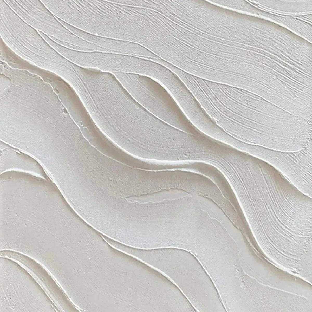 Hand-painted using eco-friendly acrylic on premium canvas, the raised surface creates depth and tranquillity. The pure white palette enhances light and shadow, offering a serene, architectural presence that feels both modern and timeless.