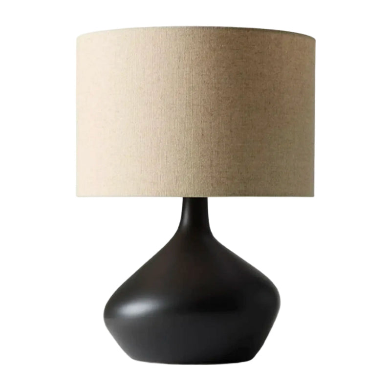 The Ahra Minimalist Table Lamp is a quiet statement of form and light. Its fluid ceramic base, inspired by Japanese pottery, carries a graceful, asymmetric silhouette. Topped with a soft linen drum shade, it casts a warm, diffused glow—perfect beside a bed, reading nook, or living room console.