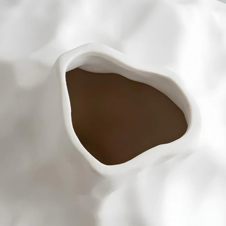 Handcrafted from natural clay with a softly textured, matte finish, its asymmetric silhouette celebrates the quiet beauty of imperfection. Each curve catches the light differently, giving the piece a subtle, living quality that feels calm and grounding.