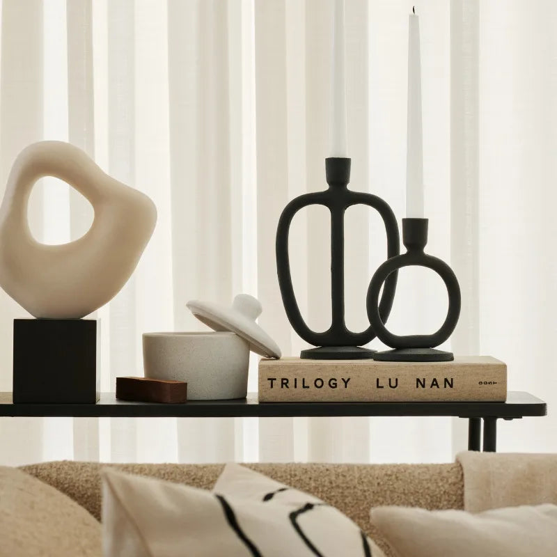 Crafted with Nordic simplicity, this black candle holder blends sculptural form with understated elegance. Its matte texture and open, modern silhouette make it a striking centrepiece for dining tables, mantels, or shelves—perfect for Japandi, minimalist, or contemporary interiors.Crafted with Nordic simplicity, this black candle holder blends sculptural form with understated elegance. Its matte texture and open, modern silhouette make it a striking centrepiece for dining tables, mantels, or shelves—perfect for Japandi, minimalist, or contemporary interiors.