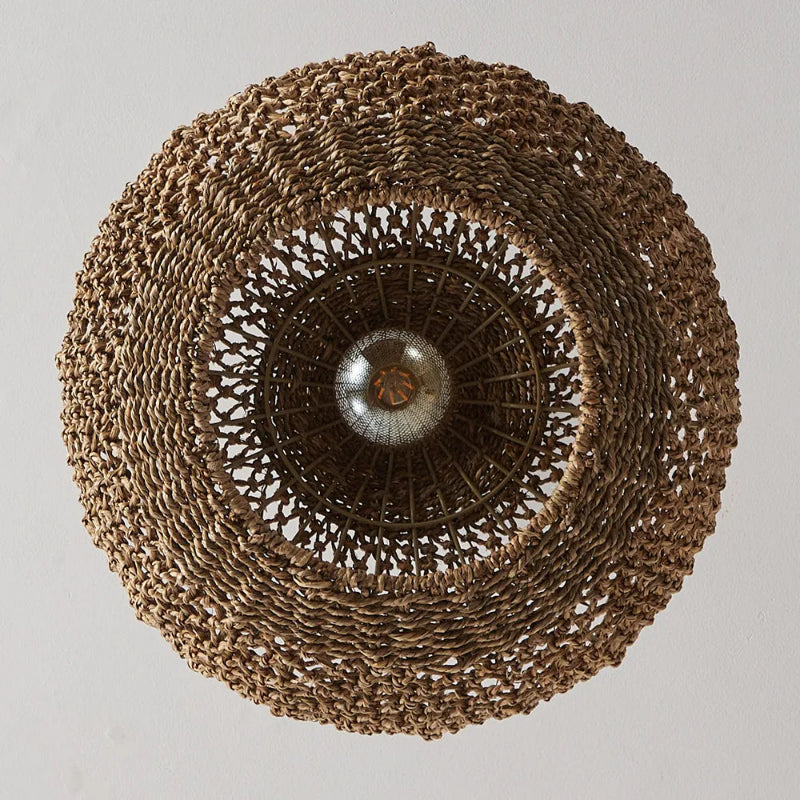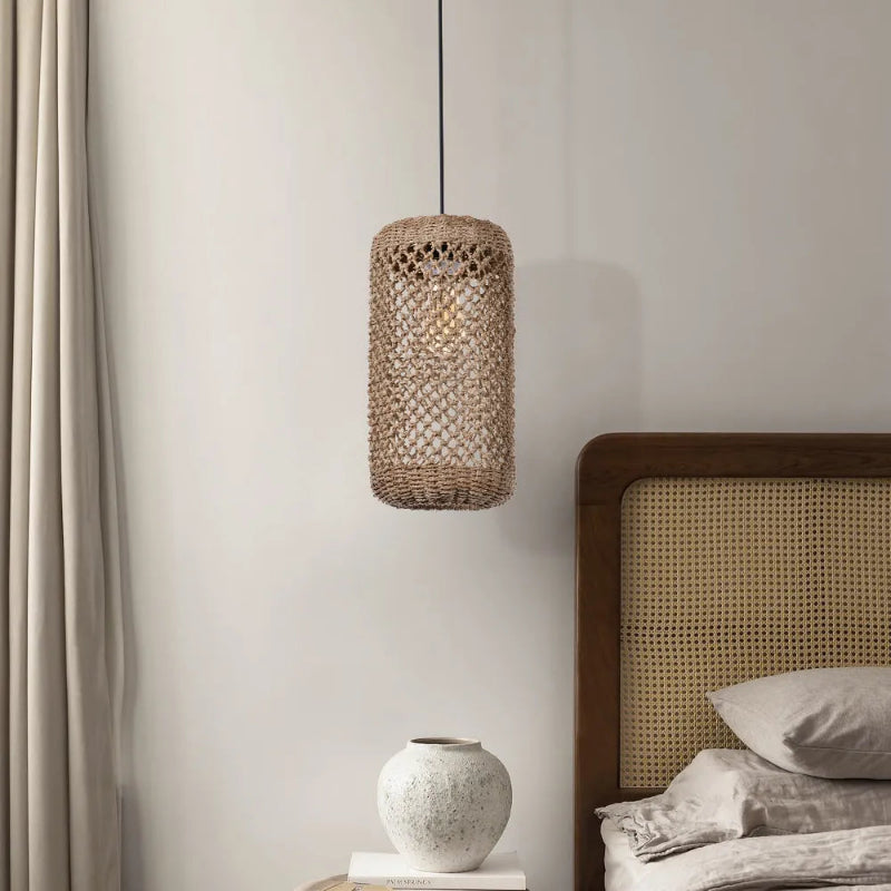 Handwoven from natural seagrass, this pendant light celebrates organic form and artisanal craftsmanship. Its open, rounded cylinder shape softly diffuses light, creating a warm, inviting glow. Rooted in Wabi Sabi aesthetics, each piece carries subtle variations that make it truly unique.